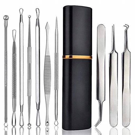 ✔Pryszcz Popper Tool Kit: 10 różne style zaskórnika i comedone trądzik ściąganie pryszczy (styl jak pokazuje zdjęcia), aby pomóc usunąć zaskórniki, trądzik i różne skazy. To narzędzie zit popping utrzymuje twarz czystą i gładką w domu w znacznie niższa cena niż salon kosmetyczny.