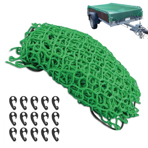 - ✅Elastyczna siatka optymalnie dopasowuje się do ładunku i pasuje do większości przyczep.
