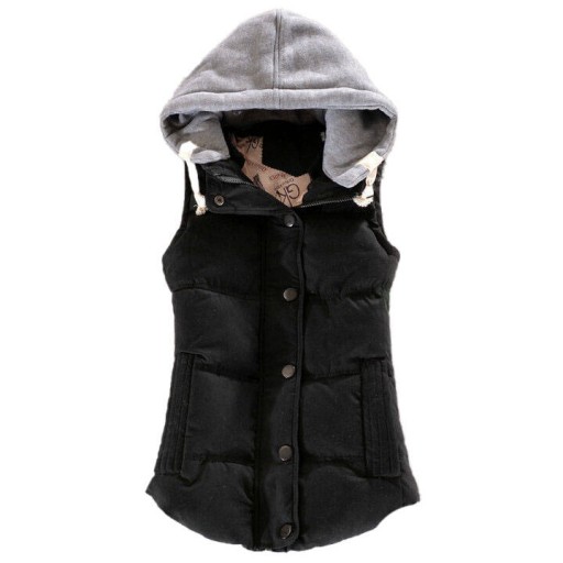 ЖИЛЕТ БЕЗРУКАВ С КАПЮШОНОМ ЖЕНСКИЙ ЗИМНИЙ СТЕГАНЫЙ ПУХОВИК
