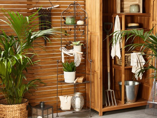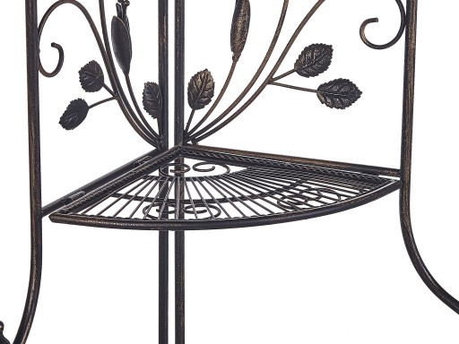 Ten narożny regał wykonana jest z lakierowanego żelaza, dzięki czemu nie tylko wygląda niesamowicie, ale jest również bardzo wytrzymały. Dekoracyjny wygląd to jedna z cech tego elementu, inne to 4 półki, na których można umieścić zarówno rośliny, jak i inne przybory. Mebel świetnie prezentuje się zarówno w ogrodzie, jak i w łazience, można go również złożyć, aby w razie potrzeby zaoszczędzić miejsce.
