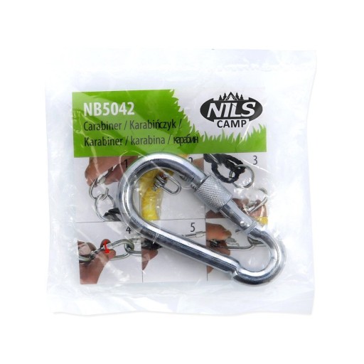 NB5042 NILS CAMPM9 to stalowy karabińczyk, z mechanizmem zabezpieczająco skrętnym. Jego zamknięcie, to nie tylko zatrzask, ale i zakrętka.