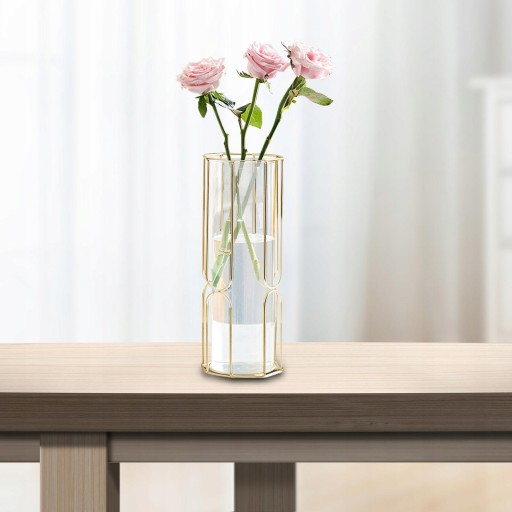 Wazon na kwiaty Wazon ze szklanej rurki z metalowym stojakiem Wazon na biurko Decor 29x10,5 cm