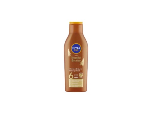 Nadaje skórze cudownie złocisty odcień i wspomaga jej długotrwałą opaleniznę. Nivea Sun Mleko do opalania z betakarotenem nadaje skórze wspaniały złoty odcień i wspomaga jej długotrwałą opaleniznę. Dodatkowo zapewnia skórze nawilżenie, aby pozostała miękka i elastyczna. Wodoodporna formuła z betakarotenem i filtrami UVA/UVB zapewnia niezawodną ochronę przed poparzeniami słonecznymi i przedwczesnym starzeniem się pod wpływem światła słonecznego. współczynnik ochrony 6 z betakarotenem chroni przed poparzeniem słonecznym