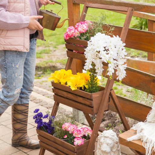 Kaskadowa konstrukcja z trzema donicami pozwala na piękny i harmonijny układ roślin, eksponując różnorodne gatunki kwiatów i ziół, co zadowoli miłośników przytulnego klimatu w swoim wnętrzu.