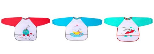 Właściwości: • wykonany z miękkiej bawełny, delikatnej dla skóry dziecka • długi rękaw dla ochrony • wodoodporny wewnętrzny materiał chroniący ubranka przed zabrudzeniem • wygodne zapięcie na rzep, ułatwiające zapinanie i zdejmowanie • kieszonka wyłapująca spadające okruszki • zabezpiecza ubranie przed zabrudzeniem podczas posiłków i zabawy dziecka • modne wzory i atrakcyjna kolorystyka