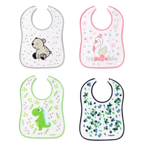 -Przeznaczony dla dzieci 9 m+ -Wygodne i miękkie zapięcie na rzep ułatwiające zakładanie i zdejmowanie -Wodoodporny materiał chroniący ubranka przed zabrudzeniem -Delikatna dla skóry materiałowa lamówka -Atrakcyjny kolorowy wzór