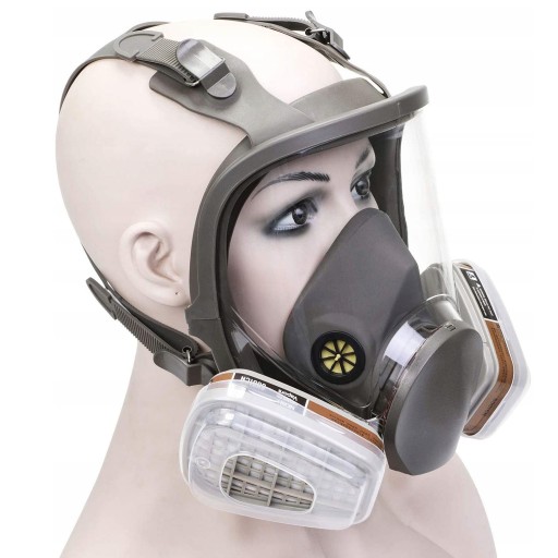 - ✔️Kompleksowa ochrona twarzy i oczu użytkownika przed rozpryskami cieczy, drażniącymi gazami i innymi mikroskopijnymi substancjami.