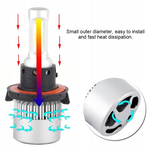 8. 2 wielkopowierzchniowe podłoża z czystej miedzi 2 specjalne super jasne odwrócone kulki lampowe COB, wysoka jasność i dobra wydajność świetlna.
