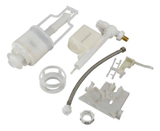 Zestawem tym można naprawiać także zbiornik 180.XXX wzbogacając go o funkcję dwudzielnego spłukiwania. Aby wykorzystać tą nową funkcjonalność trzeba wymienić przycisk na dwufunkcyjny. Zawór spustowy z tego zestawu może być także skonfigurowany jako zawór START-STOP.