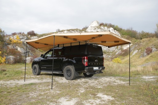 Markiza wolnostojąca Foxwing HD 270° to wysokiej jakości ogromne zadaszenie boczne do twojego samochodu. Markiza Foxwing to idealne rozwiązanie zarówno na długi biwak z noclegiem jak i na krótki postój np. na posiłek, bo jej rozłożenie jest dziecinnie proste. Pod Markizą Foxwing HD powstaje ogromne zacienione miejsce – spokojnie zmieścisz tu kuchnię turystyczną, stół i krzesła , a przestrzeń pod nią jest wymarzonym miejscem do relaksu i odpoczynku. Przestrzeń pod nią to około 12m2. Konstrukcja zadaszenia jest mocna i solidna, a potężne ramiona markizy wykonane ze stopu metali sprawiają, że jest w pełni wolnostojąca. Zalecamy używanie nóżek oraz odciągów jeżeli pogoda jest wietrzna i deszczowa – 3 sztuki nóżek są w zestawie.