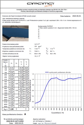 ✅ Oryginalne panele akustyczne firmy APAMA z linii Professional charakteryzują się wysokim współczynnikiem pochłaniania dźwięku. Parametr ten odpowiedzialny jest za ilość energii fal dźwiękowych jaka zostanie pochłonięta przez panele. Dzięki czemu ilość fal odbitych ponownie w stronę źródła dźwięku jest dużo mniejsza.