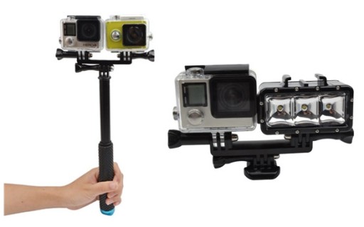 Trójnik umożliwia montaż 2 kamer lub kamery i lampy na jednym uchwycie obok siebie.