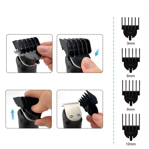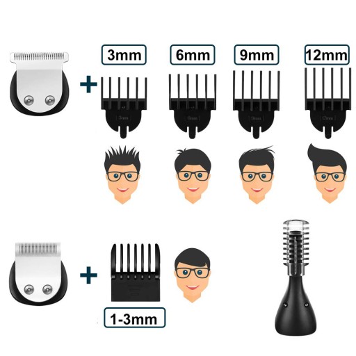 - Oferujemy rozwiązywanie wszystkich potrzeb pielęgnacyjnych dzięki naszemu wszechstronnemu zestawowi: trimmer brody, strzyjkoskop, trimmer ciała, precyzyjny trimmer, trimmer do nosa oraz mini-gillette. 5 regulowanych przesłon (3, 6, 9, 12 mm + ustawienie od 1 do 3 dla strzyjkoskopu) zapewniają pełną kontrolę nad Twoim wyglądem.