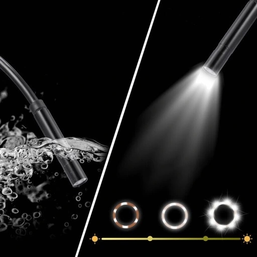 ✅Ze światłami led i wodoodpornością IP67: Wyposażony w 8 super jasnych diod LED, jasność można regulować w zależności od sytuacji, co pozwala uzyskać wyraźniejszy widok w ciemnym otoczeniu. Sonda kamery jest wodoodporna IP67 i może pracować poniżej 1M.