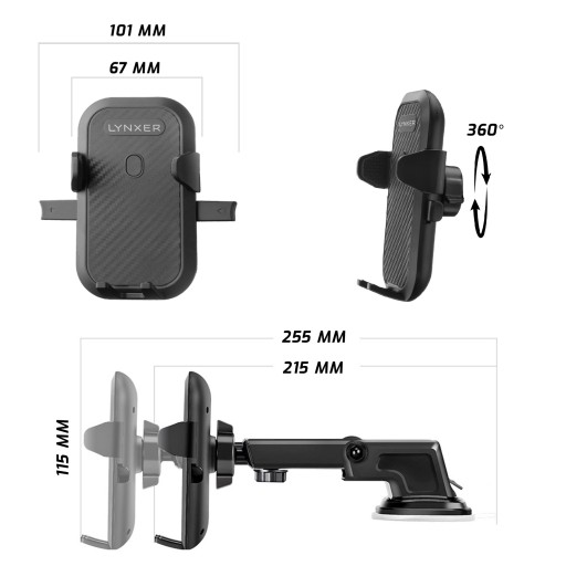 Posiadając uchwyt Lynxer nie musisz martwić się gdzie możesz zamontować uchwyt, ponieważ model ten jest wielofunkcyjny i można go założyć na kratkę nawiewu, kokpit albo szybę.