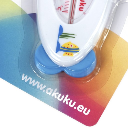 Termometr do mierzenia temperatury wody „akuku” dzięki czytelnej skali pozwoli dokładnie zmierzyć temperaturę wody, a ciekawy kształt będzie atrakcją podczas kąpieli dziecka. Wykonany z bezpiecznych i trwałych materiałów. Bezrtęciowy. Funkcjonalny i wygodny w użyciu. Wesołe, dziecięce kolory.