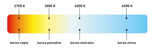 Podczas doboru oświetlenia, należy zwrócić uwagę na temperaturę barwową wyrażaną w Kelwinach [K]. Im niższa wartość, tym barwa światła jest cieplejsza. Wartości powyżej 4000 K są uznawane za chłodne. Temperatura 4000 K jest najbardziej zbliżona do światła dziennego.