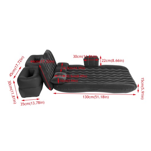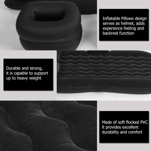 Opis: Jest to bardzo praktyczny i wygodny dmuchany materac do łóżka. Jest miękki do spania lub leżenia. Przenośny do przenoszenia i łatwy do czyszczenia. Można go używać przy różnych okazjach, np. na zewnątrz jako odporną na wilgoć matę gruntową, w pomieszczeniach jako miękką poduszkę relaksacyjną, miękkie łóżko w samochodzie na tylnym siedzeniu. Cechy: 1. Wykonany z miękkiego flokowanego PCV, zapewnia doskonałą trwałość i wygodę. 2. Trwały i mocny, jest w stanie utrzymać nawet duży ciężar. 3. Konstrukcja nadmuchiwanych poduszek służy jako kask, dodaje wrażeń i funkcji oparcia. 4. Łatwe czyszczenie, wystarczy wytrzeć, gdy się zabrudzi. 5. Nadaje się do podróży w pomieszczeniach, na duże odległości, zajęcia na świeżym powietrzu, biwakowania, pływania łodzią lub czegokolwiek chcesz. Dane techniczne: Stan: 100% nowy Materiał: PVC + flokowanie Kolor: czarny, beżowy (opcjonalnie) Nadmuchiwane poduszki: Około. 36,5 x 20,5 x 10 cm / 14,37 x 8,07 x 3,94 cala