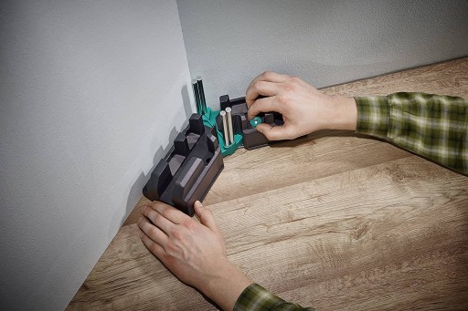 - Z pomocą regulowanego przymiaru i skrzynki uciosowej uda się wykonać idealne połączenia listew przypodłogowych również w narożnikach najbardziej krzywych ścian w starym budownictwie.