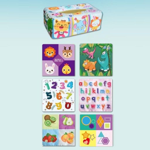 Interaktywne gry: Wystarczy złożyć i włożyć chusteczki z tkaniny do pudełka, a następnie rozpocząć grę typu „przeciągnij i rozerwij”. Ciesz się czasem zabawy w pudełko chusteczek ze swoimi dziećmi i stwórz wspaniałe wspomnienia
