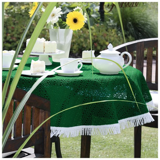 КРУГЛАЯ СКАТЕРТЬ САДОВАЯ ПЕНА, СТОЙКАЯ К ПЯТНАМ, БАХЛАЯ, 160 СМ, ЗЕЛЕНЫЙ КРУГ
