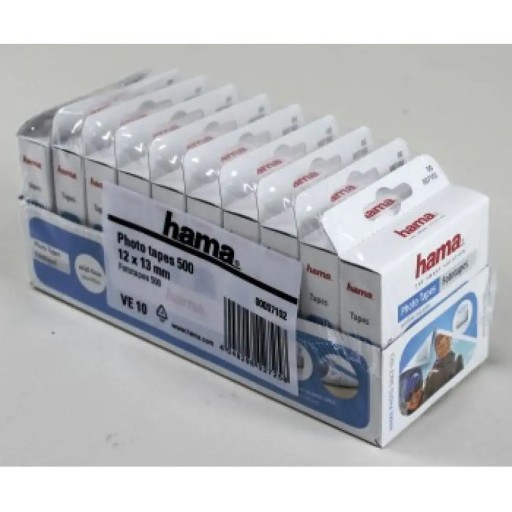 Podklejki do zdjęć Hama 500 sztuk w pudełku, samoprzylepne, dwustronne. Wymiary: 12 x 13 mm. Uniwersalne zastosowanie do każdego papieru fotograficznego.
