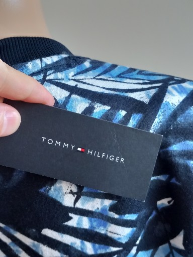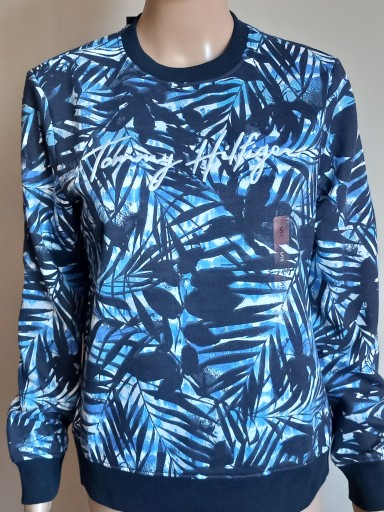 DAMSKA BLUZA MARKI TOMMY HILFIGER W ROŚLINKI Z NAPISEM Z PRZODU I MAŁYM LOGO NA RĘKAWIE, ROZMIAR S PROSTO Z USA