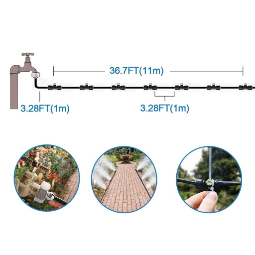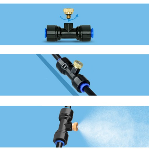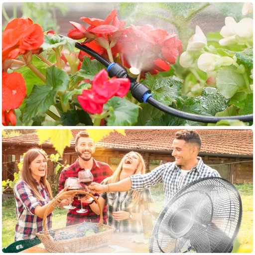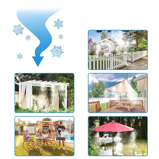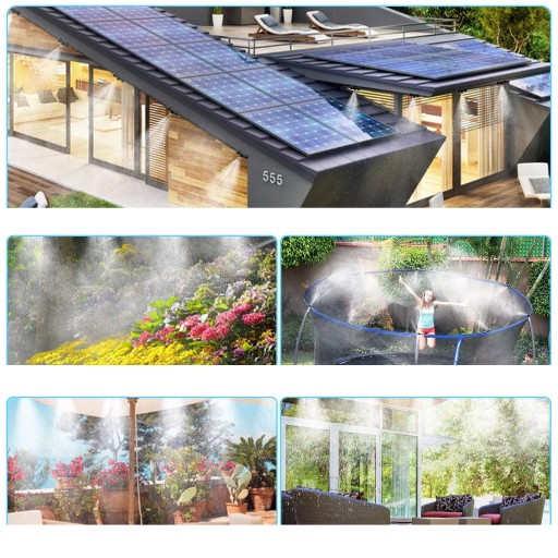 - System nawadniania miękką mgiełką może być stosowany w parkach wodnych trampolin, basenie, wentylatorze, parasolu, brodziku, markizach, basenach i klatkach dla zwierząt do zabaw wodnych na świeżym powietrzu, nie tylko zabawy, ale także chłodzenia.