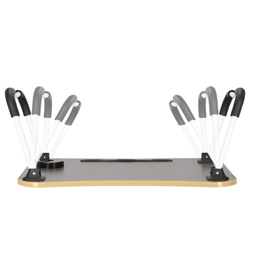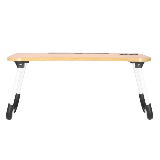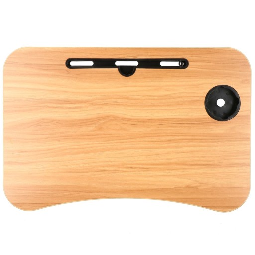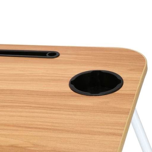 Stolik pod laptopa z przestronnym blatem został wyposażony w specjalne miejsca na tablet/telefon, w którym możesz bez problemu postawić urządzenie w pionie, bez obawy, ze się przewróci czy spadnie oraz specjalne wgłębienie na kubek, które zabezpiecza przed niechcianym wylaniem płynu na stojące obok urządzenia.