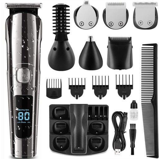 1.11 w 1 Wielofunkcyjny zestaw do pielęgnacji: maszynka do strzyżenia włosów ma 5 różnych nasadek, które są idealne do wszystkich fryzur: pełnowymiarowa maszynka do strzyżenia włosów, precyzyjny trymer, zestaw do strzyżenia nosa, trymer do brody i trymer do włosów na ciele. 1 * grzebienie ręczne i trymer do włosów jest wyposażony w 4 grzebienie mocujące (3 mm / 6 mm / 9 mm / 12 mm) i 1 regulowany grzebień.