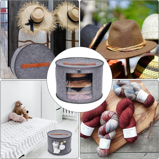 ✅【Materiał wysokiej jakości】Wysokiej jakości materiał filcowy, wytrzymały i trwały, niełatwy do zarysowania. Miękki skórzany uchwyt jest bardzo wygodny. Na dole pudełka znajduje się elastyczny pas bezpieczeństwa, dzięki któremu czapka może być stabilnie umieszczona. Szare filcowe pudełko do przechowywania jest odporne na plamy, co zmniejsza kłopoty z czyszczeniem.