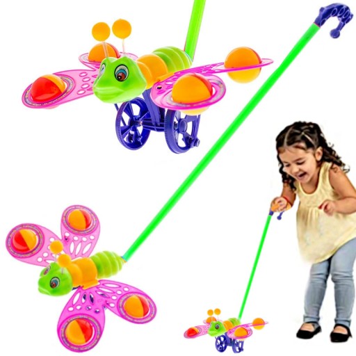 Kolorowy pchacz motylek zostanie najlepszym przyjacielem maluszka. Rozwija zdolności motoryczne i koordynacyjne. Wielokolorowa zabawka pomaga uczyć dziecko w odróżnianiu kolorów, jak i zachęca do chodzenia. To idealna propozycja dla dzieci uwielbiających spędzać czas w ruchu. Ruchome kółka które kręcą się podczas jazdy powodują że motylek rusza skrzydłami. Zdejmowana rączka ułatwia przechowywanie przedmiotu w domu.