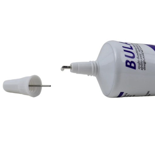 Posiada precyzyjną metalową końcówkę dozującą oraz szpikulec w nakrętce zapobiegający zasychaniu.