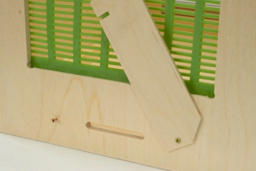 - Posiada z jednej strony zamykaną pokrywką kratkę odgrodową dzięki której możemy zamknąć wlotek - wtedy matka nie wyjdzie a pszczoły przechodzą - ta węższa na zdjęciach czarna