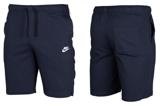 Spodenki Nike to męski model wykonany z lekkiego materiału w ciemnym odcieniu granatu. Posiadają elastyczny pas z regulacją i boczne kieszenie, idealne na trening lub casualowe noszenie.