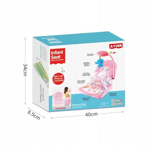 - Pięć melodii i wibracje - funkcje te pomagają uspokoić i zrelaksować dziecko, oferując różnorodne formy rozrywki.