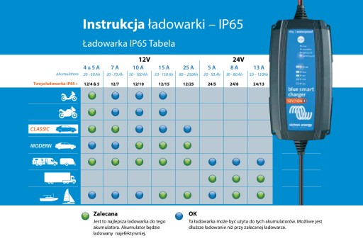 Charakterystyka ładowarki Blue Smart Charger IP65:
