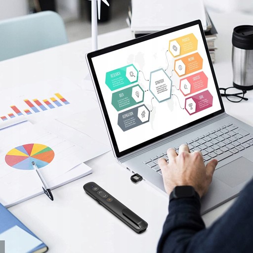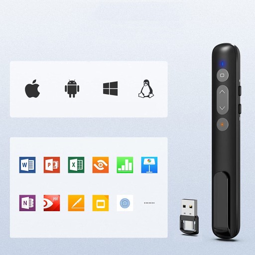 ✔️ Funkcje: Prezenter ma cztery miękkie i wygodne projekty dotykowe, w połączeniu z funkcjami wskaźnika laserowego, góra, dół, dół, pełny ekran, czarny ekran, alarm niskiego poziomu baterii, zmiana okna, wprowadzenie hiperłącza i regulacja głośności prezentacji.