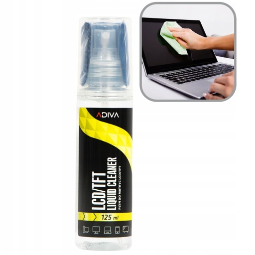 Przedmiotem sprzedaży jest: PŁYN DO CZYSZCZENIA MONITORÓW LCD TFT 125 ml + ŚCIERECZKA Z MIKROFIBRY ADIV