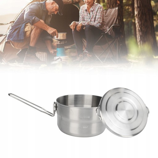 1. Składany uchwyt: garnek kempingowy ze stali nierdzewnej ma składany uchwyt, który oszczędza miejsce, ułatwiając przechowywanie i przenoszenie.