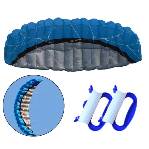 -Dokładnie dostrojony nadmuchiwany latawiec o długości 255 x 85 cm z linkami o długości 30 metrów, drążkiem sterującym i uchwytem do przenoszenia