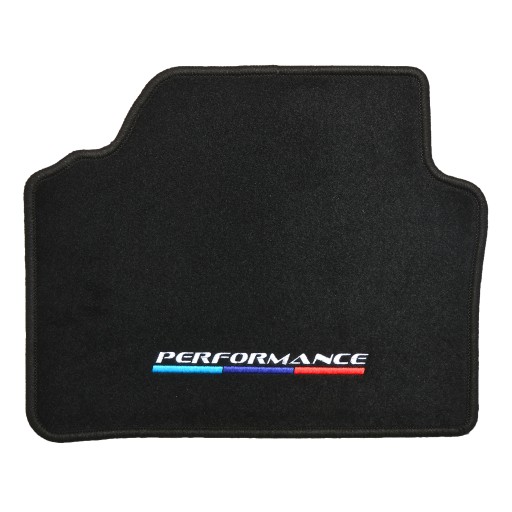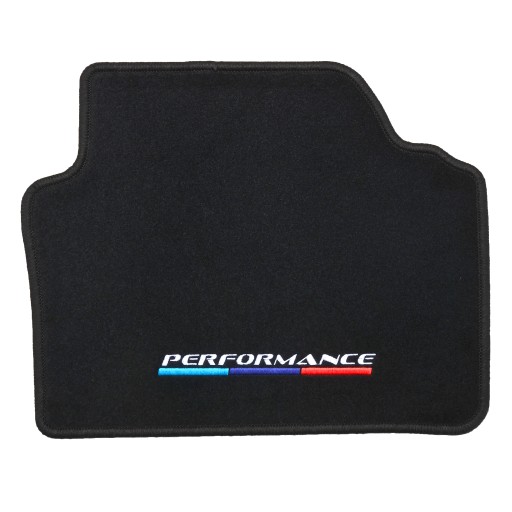 Napis: "Performance". Wysokiej jakości haft komputerowy bezpośrednio na dywanikach. Efekt 3D.