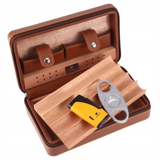 Po pierwsze, DUŻA POJEMNOŚĆ I PAKTYCZNOŚĆ: Humidor jest wyposażony w nawilżacz i zakraplacz, dzięki czemu kontrolowanie wilgotności cygar jest wygodniejsze i bardziej precyzyjne. Etui na cygara jest dostarczane z 2 wyjmowanymi tacami z drewna cedrowego w różnych rozmiarach na 4 cygar