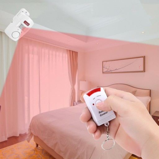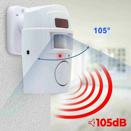 👍👍👍 BEZPRZEWODOWA KONSTRUKCJA: Wbudowany czujnik ruchu PIR, zasięg skanowania 105 ° może obejmować duży obszar, jeśli wykryty zostanie jakikolwiek ruch, alarm zostanie aktywowany po 5 sekundach (można użyć pilota, aby wyłączyć w ciągu 5 sekund).