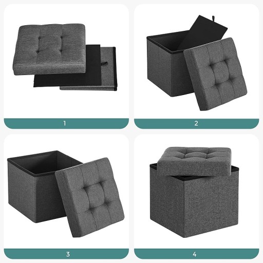 Pojemność pufy to 40 litrów, które pozwala na przechowywanie wielu różnych przedmiotów, od ubrań i pościeli po książki, zabawki i wiele innych