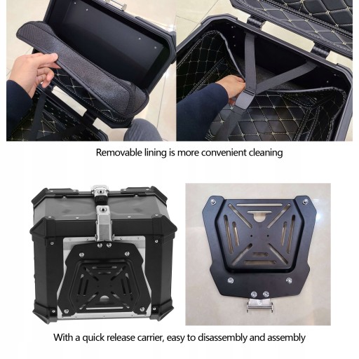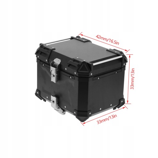 1. Czarna kufer górny o pojemności 45 litrów jest wystarczająco duży, aby pomieścić jeden kask integralny lub modułowy.