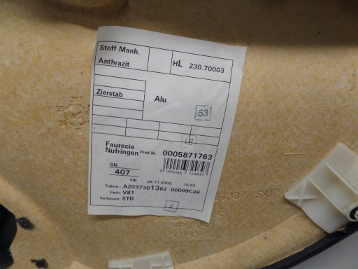 BOCZEK TAPICERKA DRZWI LEWY TYŁ MERCEDES-BENZ C KLASA W203