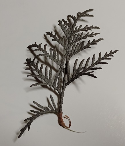 Poniżej pokazano, w jaki sposób można przeprowadzić metalizację obiektu nieprzewodzącego z wykorzystaniem niniejszej farby grafitowej. Jako obiektu użyto gałązki tui.