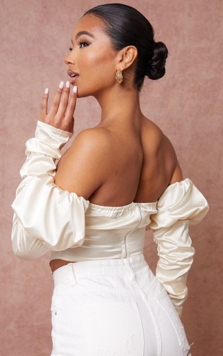 PRETTYLITTLETHING UL9 АТЛАСНЫЙ УКОРОЧЕННЫЙ ТОП-КОРСЕТ S