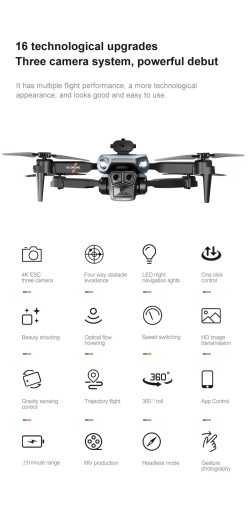 Product configuration parameters: 4K HD Dual camera/optical flow positioning/obstacle avoidance/electric adjustable camera
